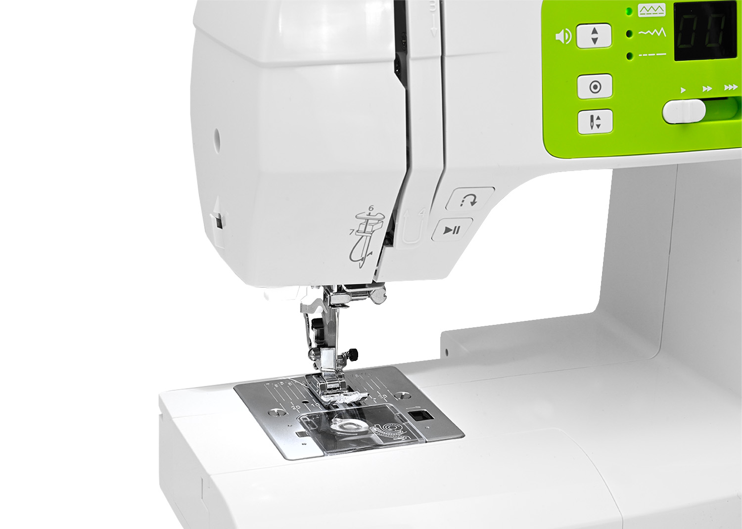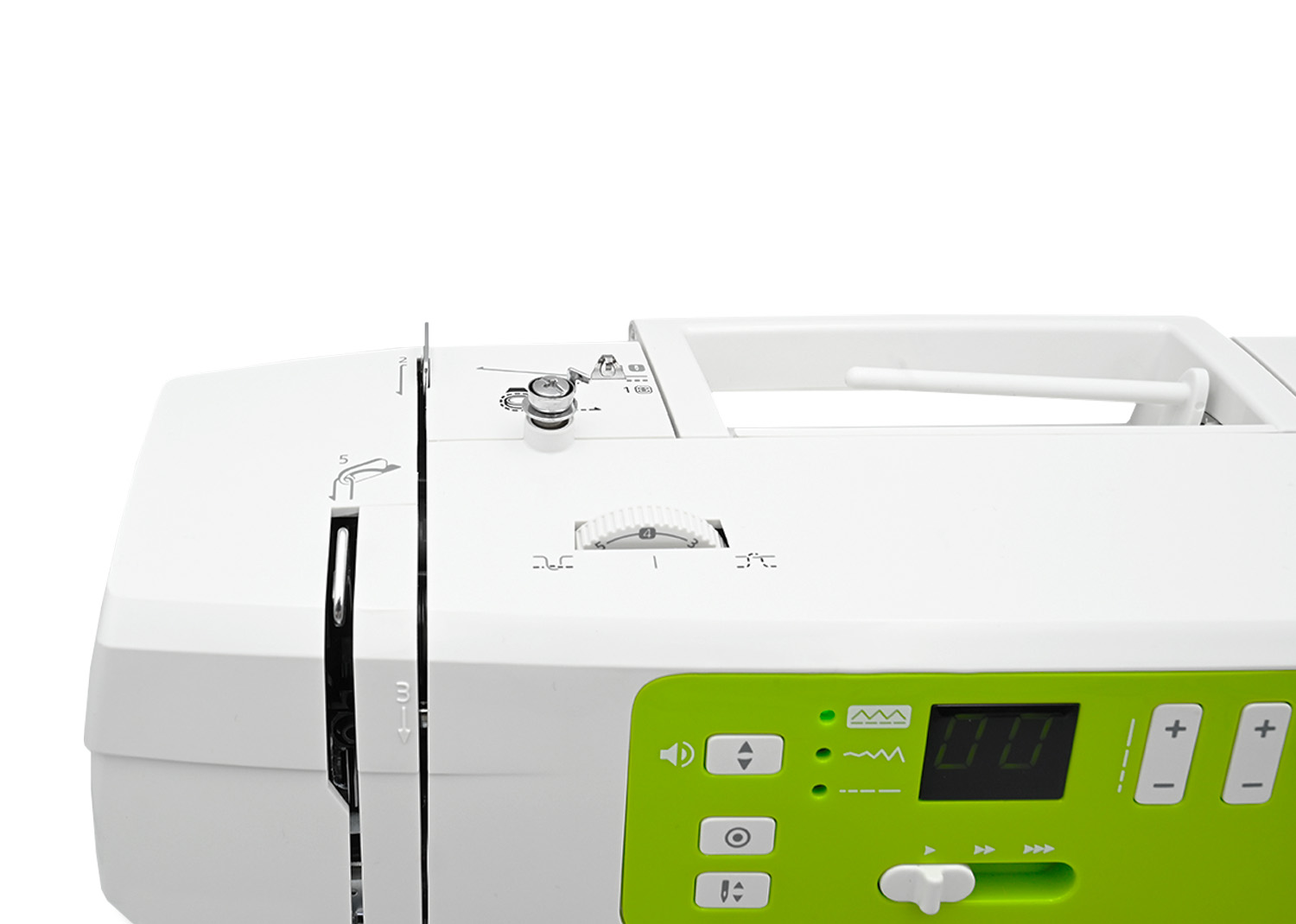 - Controllo velocità con pulsante Start/Stop, ideale per cucire senza pedale.