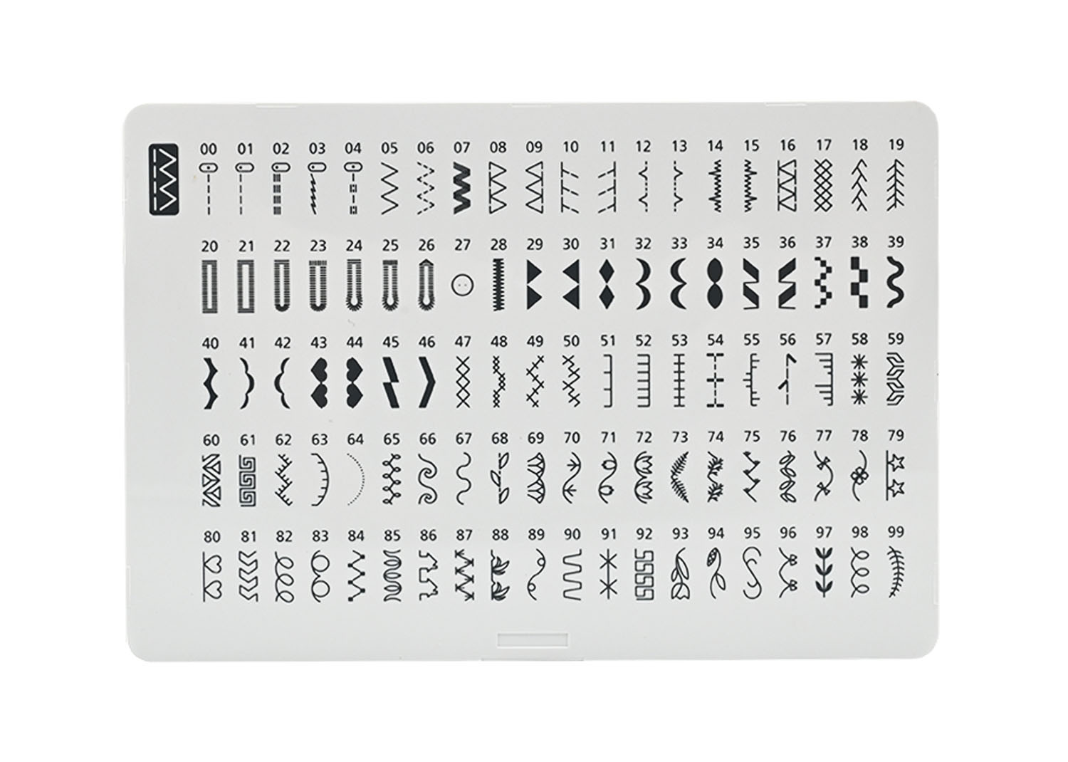 - 100 punti preimpostati, inclusi 7 stili di asole automatiche ad 1 tempo, 18 punti satin, 4 punti croce, 7 punti quilt e 40 punti decorativi.