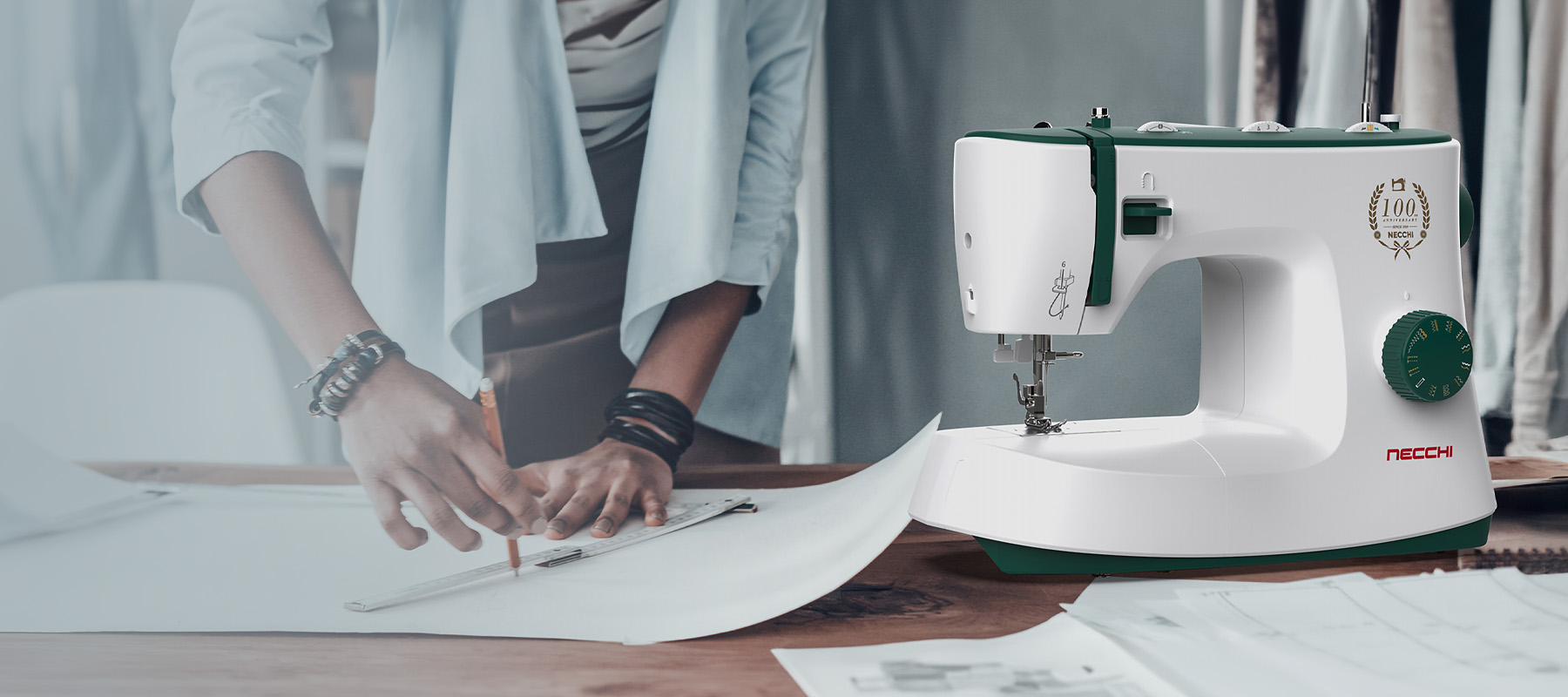 Macchina per cucire perfetta per chi muove i primi passi nel cucito, adatta alle cuciture essenziali di carattere sartoriale e creativo.