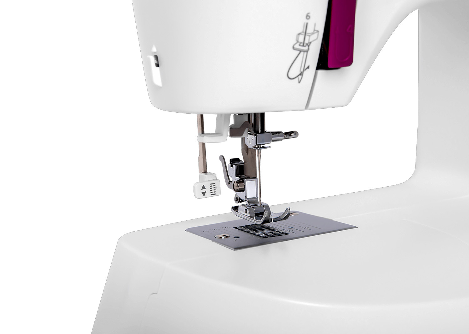 Grazie all’infila ago automatico riuscirai di velocizzare l’operazione di infilatura del filo superiore all’interno della cruna dell’ago. La luce LED garantisce una migliore visibilità sul piano di lavoro. Cucire polsini, maniche e pantaloni non sarà più un problema: rimuovendo il piano di lavoro potrai facilmente lavorare a braccio libero, riuscendo a cucire senza fatica le parti tubolari. Inoltre, il volantino ed il selettore punti sono rifiniti con materiale soft-touch.